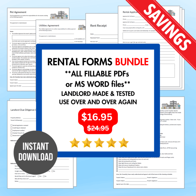 As a first time landlord, I found these forms extremely helpful. I liked how most of the forms were editable. Made sense to get the whole bundle even if I didn’t use some as it gave me good reference points to consider.